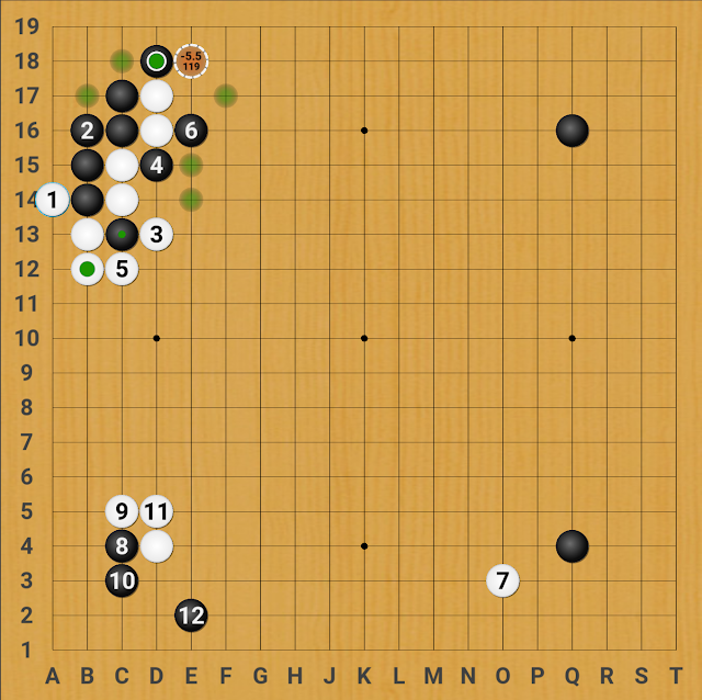 結果這邊下錯, 以為可以把邊上五顆白棋吃掉